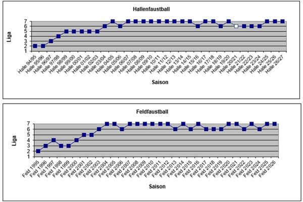 1=Gauliga, 2=Bezirksliga, 3=Landesliga, 4=Verbandsliga, 5=Schwabenliga, 6=2.Bundesliga, 7=1.Bundesliga