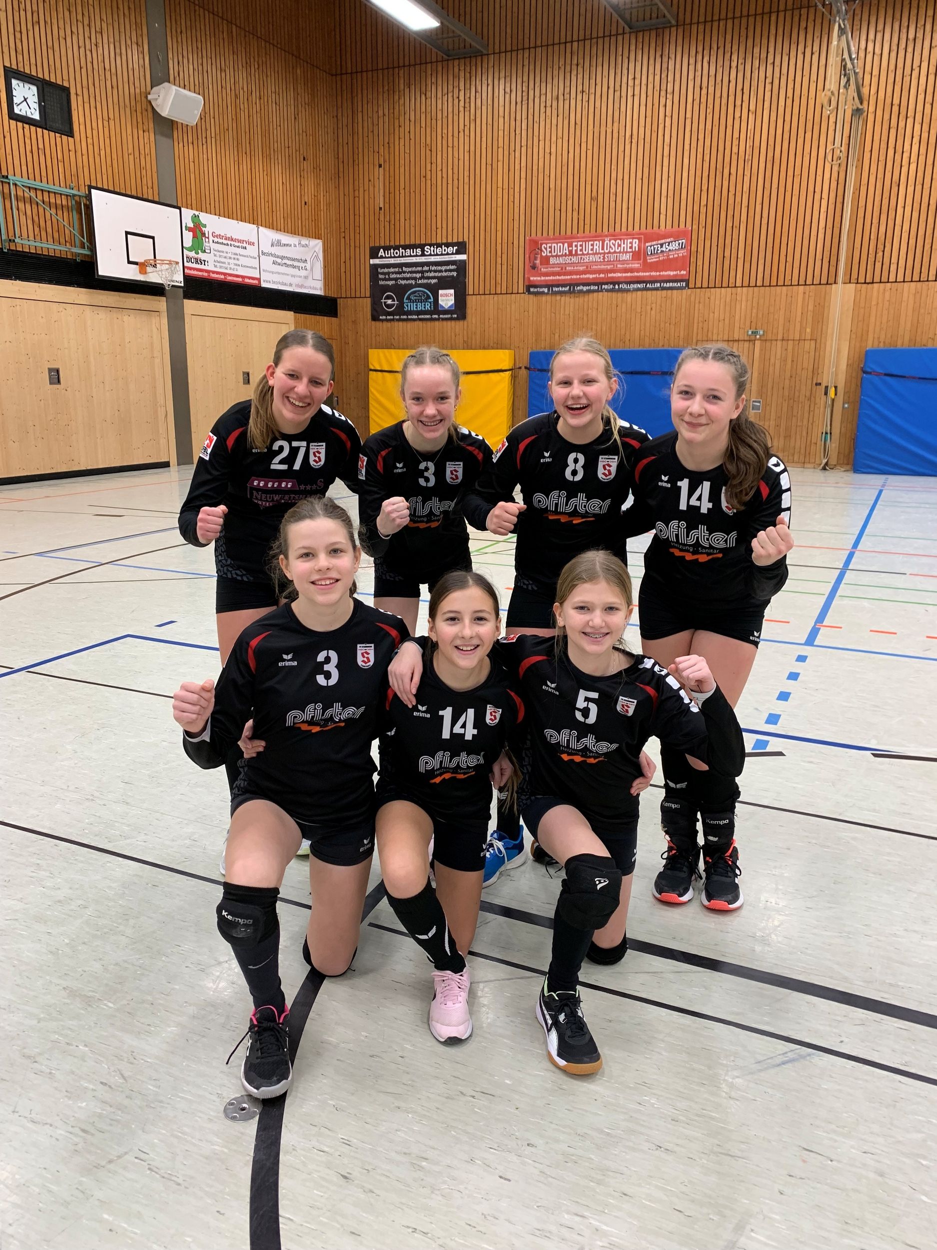 Im neuen Modus der U16 trafen am 18. Januar die Teams aus Bretten, Karlsdorf, Offenburg, Gärtringen, Unterhaugstett und Stammheim aufeinander. Im Meisterschaftsmodus fand zunächst die Vorrunde in zwei 3er-Gruppen statt. Gegen Bretten verschlief die TVS-Fünf den Start komplett. Nach einem zwischenzeitlichen Rückstand von 1:6 fanden die Mädels aber langsam besser ins Spiel und begannen ihre Aufholjagd. Am Ende musste der Satz dennoch mit 9:11 abgegeben werden. Die Leistungssteigerung aus der zweiten Satzhälfte zeigte sich nun auch im zweiten Satz. Gute Aktionen auf allen Positionen brachten einen ungefährdeten Satzgewinn (11:6). Im zweiten Vorrundenspiel gegen Offenburg starteten die Stammheimerinnen mit veränderter Formation mit Sarah Abramek im Rückschlag. Gegen die Offenburgerinnen, die nur zu viert spielten, taten sich die Mädels lange schwer, konnten sich dann aber im Spielverlauf absetzen und 11:7 gewinnen. Im zweiten Satz machten sich die Mädels durch zu viele Eigenfehler das Leben schwer und mussten den Satz mit 9:11 abgeben. Das Spiel gegen Bretten und Offenburg endete 2:0 für Bretten, was Platz 2 in der Gruppe bedeutete.