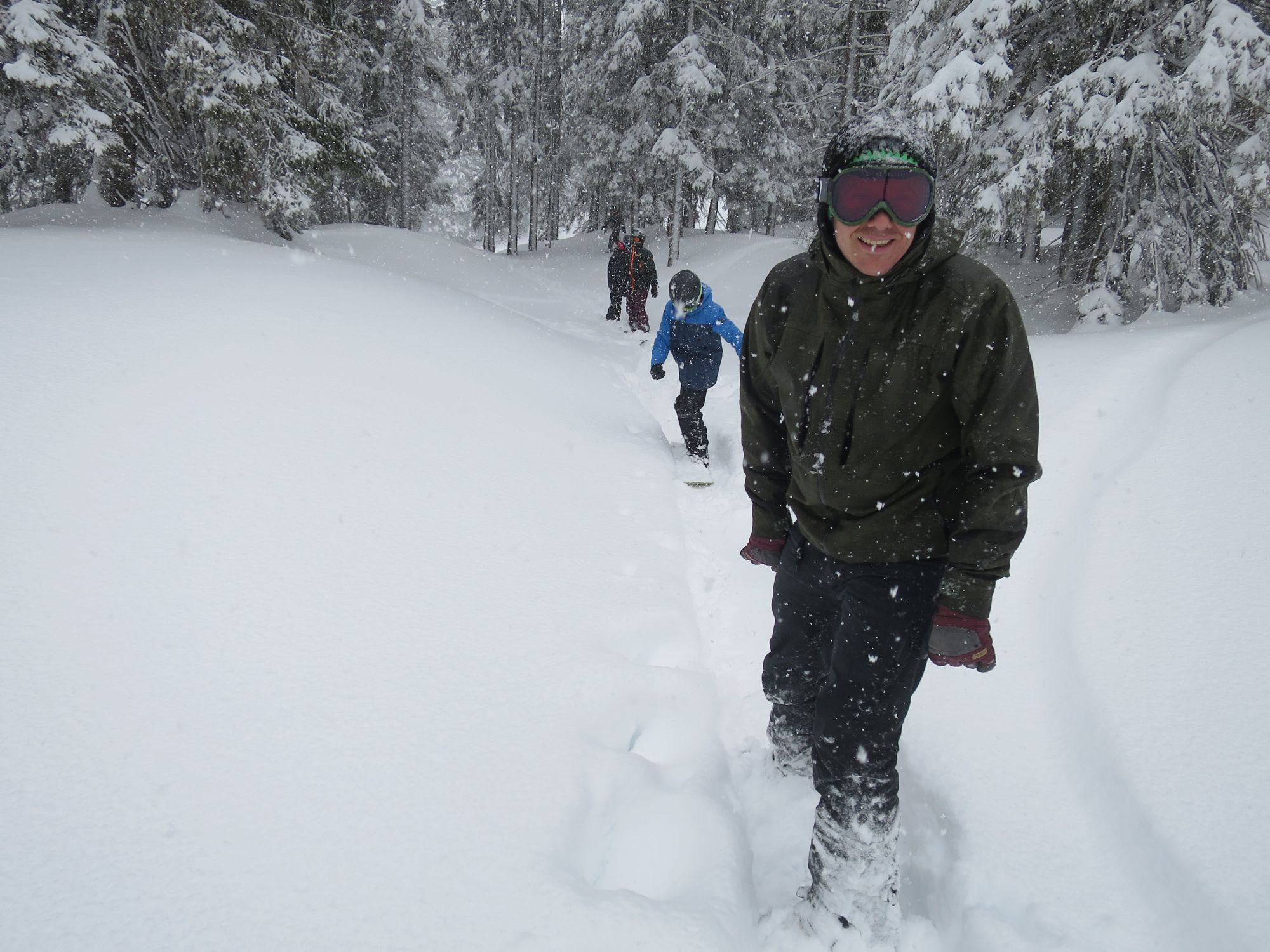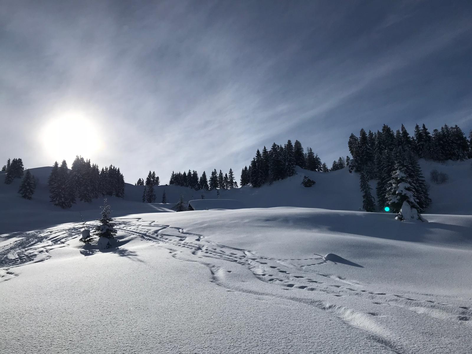 Um 9.20 Uhr war der Parkplatz an der Schelpenalp erreicht und die Ski- und Snowboardgruppen machten sich auf den Weg ins Skigebiet. Dichter Schneefall machte den Vormittag zu einem unvergesslichen Erlebnis in dieser traumhaften Winterlandschaft. Allen Teilnehmern war klar, wieso Balderschwang noch vor knapp zwei Wochen komplett von der Außenwelt abgeschnitten war: Schneeberge bis zu 3m Höhe und im Gelände Massen an Schnee, die mittlerweile auf ein erträgliches Maß zusammengefallen waren. Und auch die Wetterprognose hielt wie versprochen; pünktlich zur Mittagshocketse am Bus hatte sich die Sonne von den Wolken frei gekämpft und ein traumhafter Winternachmittag lud zum weiteren Pistenerlebnis bei.
