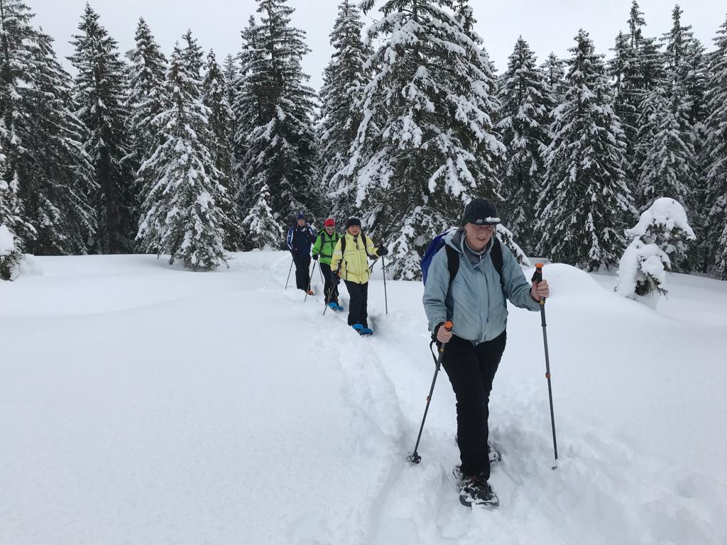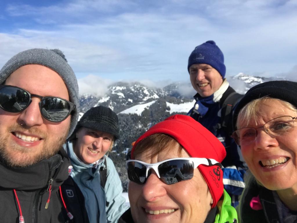 Doch nicht nur Ski- und Snowboard fahren war angesagt, eine Gruppe Schneeschuhwanderer mit fünf Personen wanderte über 550 Höhenmeter von Balderschwang über die Burstalpe auf den Burstkopf. Pünktlich zum Anstieg auf den letzten Metern des Gipfels zeigte sich die Sonne und verwöhnte die Schneesportler mit einem traumhaften Bergpanorama. Frisch gestärkt ging es auf den Rückweg der 8,2 km langen Schneeschuhwanderung, so dass alle Sportler wieder gegen 15.45 Uhr am Bus eintrafen.