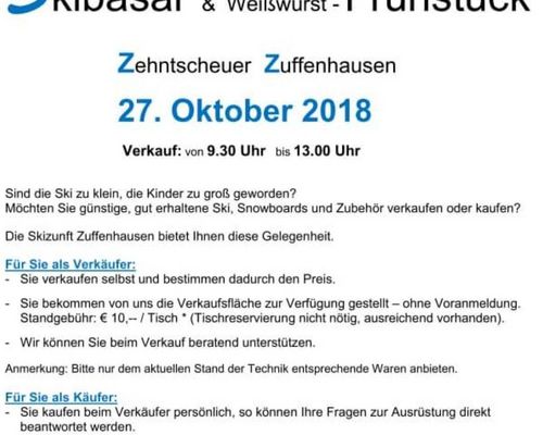 Die Skizunft Zuffenhausen veranstaltet am Sonntag 27.10., 9.30 - 13.00 Uhr ihren traditionellen Skibasar.