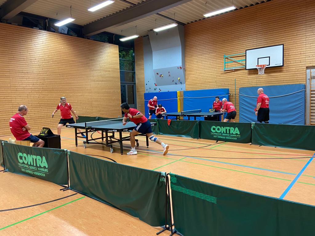 Zum Auftakt des Mannschaftkampfes standen sich zunächst die Eröffnungsdoppel der Teams gegenüber. Nur einen Satzerfolg verbuchten Sharma / Schmidt bei ihrer Niederlage gegen Pohlmann / Szeri. Der gute Start half im Endeffekt nichts, so dass Peschken / Meinert eine Niederlage in vier Sätzen gegen Frank / Hunger kassierten. Beim nachfolgenden Sieg in drei Sätzen gegen Schwendt / Ziegler zeigten Wolf / Maier indessen ihren Kontrahenten die Grenzen auf. Nach den anfänglichen Paarungen gingen nun der Topspieler unserer Herren II Prashant Sharma und die Nummer 2 des Gästeteams bei einem Stand von 1:2 an den Tisch. Glücklich über seinen Fünf-Satz-Sieg gegen Jörg Hunger war derweil der Gastgeber Prashant Sharma, ging er doch zumindest auf dem Papier als Außenseiter in die Partie. Albrecht Schmidt bekam im Anschluss seinen Gegner Bela Frank dagegen beim deutlichen 0:3 nicht richtig in den Griff. Anschließend ging das mittlere Paarkreuz bei einem Spielstand von 2:3 an den Tisch. Kaum gefährdet war wiederum der 3:0-Erfolg von Marc Peschken danach gegen Attila Szeri. Hagen Wolf war in der Partie gegen Frank Pohlmann nicht zu stoppen und ging mit einem 3:0-Erfolg durchs Ziel. Wenig später war dann das untere Paarkreuz bei einem Spielstand von 4:3 an der Reihe. Im folgenden Match gingen die Sätze zwei bis vier an die Gäste, so dass Erwin Meinert über die 1:3-Niederlage gegen Klaus Ziegler hinweggetröstet werden musste. Wie umfightet das gesamte Spiel war, zeigt auch der Verlauf der einzelnen Sätze, die alle mit nur zwei Punkten Differenz ausgingen. Stark im Hintertreffen war Fabian Maier nach einem Zweisatzrückstand, machte Udo Schwendt dann jedoch noch einen Strich durch die Rechnung und gewann das Match noch in fünf Sätzen. Vor dem Spitzeneinzel stand der Mannschaftskampf somit 5: 4. Prashant Sharma hatte wenig später gegen Bela Frank indes bei seinem 0:3 wenig auszurichten. Ein Satz reichte nicht, weshalb Albrecht Schmidt das Spiel gegen Jörg Hunger, letztendlich auf Basis der TTR-Werte wie zu erwarten mit 1:3 verlor. Schaut man sich das Spiel in der Gesamtbetrachtung an, so wurde es nicht richtig eng. Bei der 1:3-Niederlage gegen Frank Pohlmann hatte Marc Peschken nur im ersten Satz eine Chance. Die Spielstandsanzeige vor dem Spiel der beiden Vierer zeigte ein 5:7. Hagen Wolf überzeugte im Match gegen Attila Szeri, das er ohne Satzverlust siegreich gestaltete und somit einen Punkt auf der Habenseite für die Heimmannschaft verbuchen konnte. Beim folgenden Erfolg in drei Sätzen gegen Udo Schwendt zeigte Erwin Meinert seinem Gegner die Grenzen auf. Zwischenzeitlich konnte Fabian Maier zwar einen Satz für sich entscheiden, verlor das Spiel gegen Klaus Ziegler aber trotzdem mit 1:3. Bevor sich die beiden Doppel final duellierten, stand es 7:8 für die Gäste. Im entscheidenden Schlussdoppel erreichte dann die Spannung ihren Höhepunkt. Betrübt über ihre Fünf-Satz-Niederlage gegen Frank / Hunger waren Sharma / Schmidt, obwohl sie alles gegeben hatten. Damit war der 9. Punkt für den TB Untertürkheim III im Kasten.