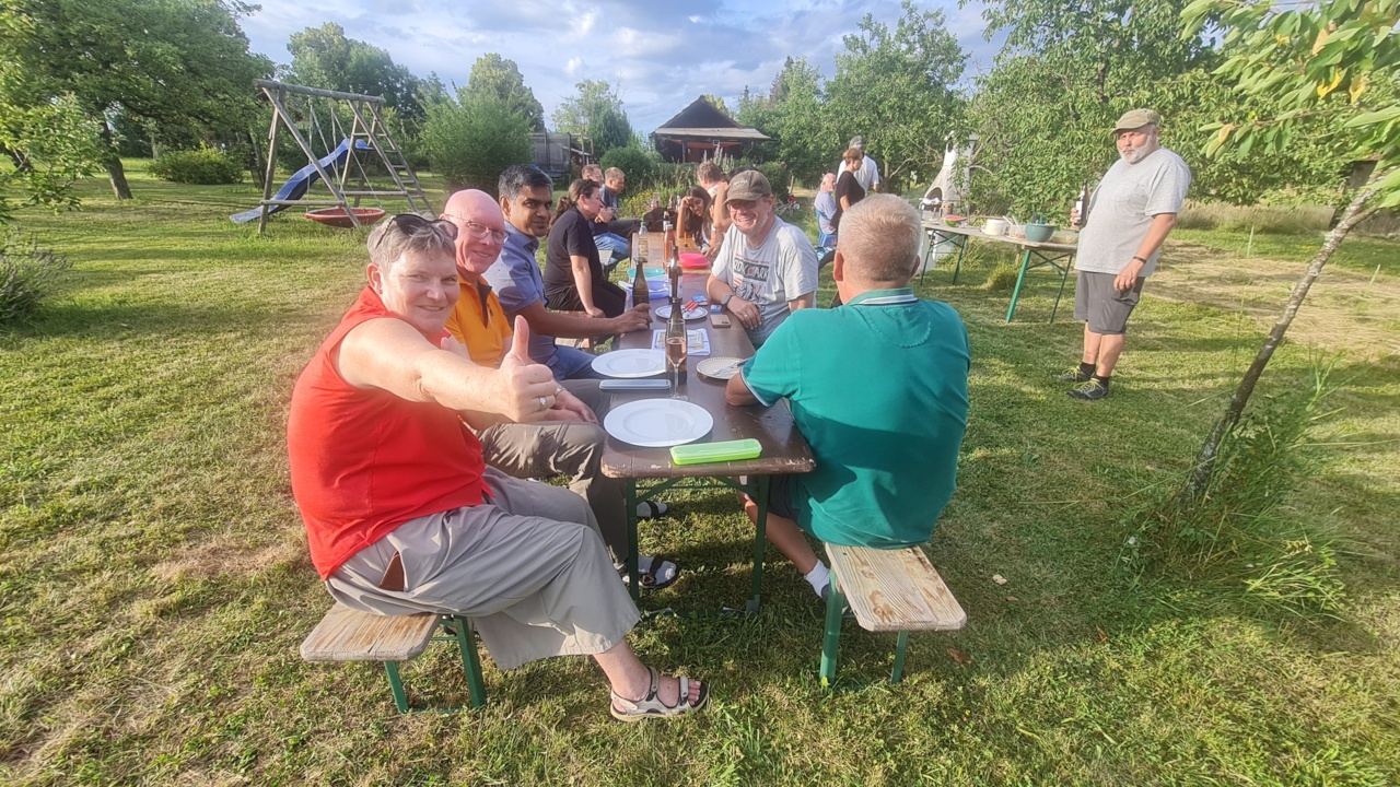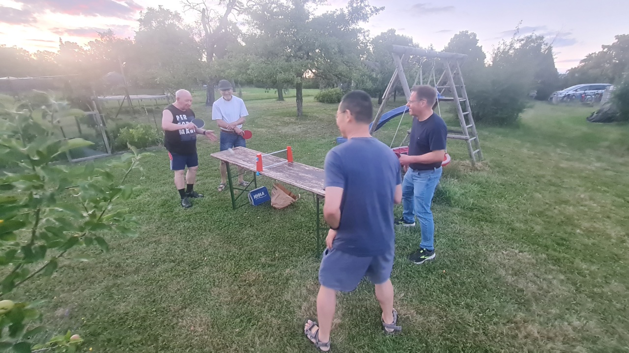 Ein traumhafter Sommerabend unter Gleichgesinnten; so trafen sich am heutigen Abend um die 20 Tischtenniskameraden zum Feiern des Abschlusses der Tischtennis-Saison 2024/25 - und ja, die Saison war erfolgreich. Mit insgesamt 5 Mannschaften nahm die Tischtennisabteilung in der abgelaufenen Saison an der Punktspielrunde teil. Tolle Erfolge trugen dazu bei, dass an diesem Abend bis spät in der Nacht über vergangene Spiele gesprochen und zudem schon ein Ausblick auf die neue Saison 2025/256, die im September starten wird, gemacht werden konnte.