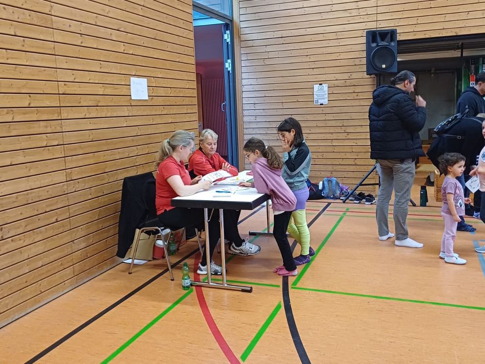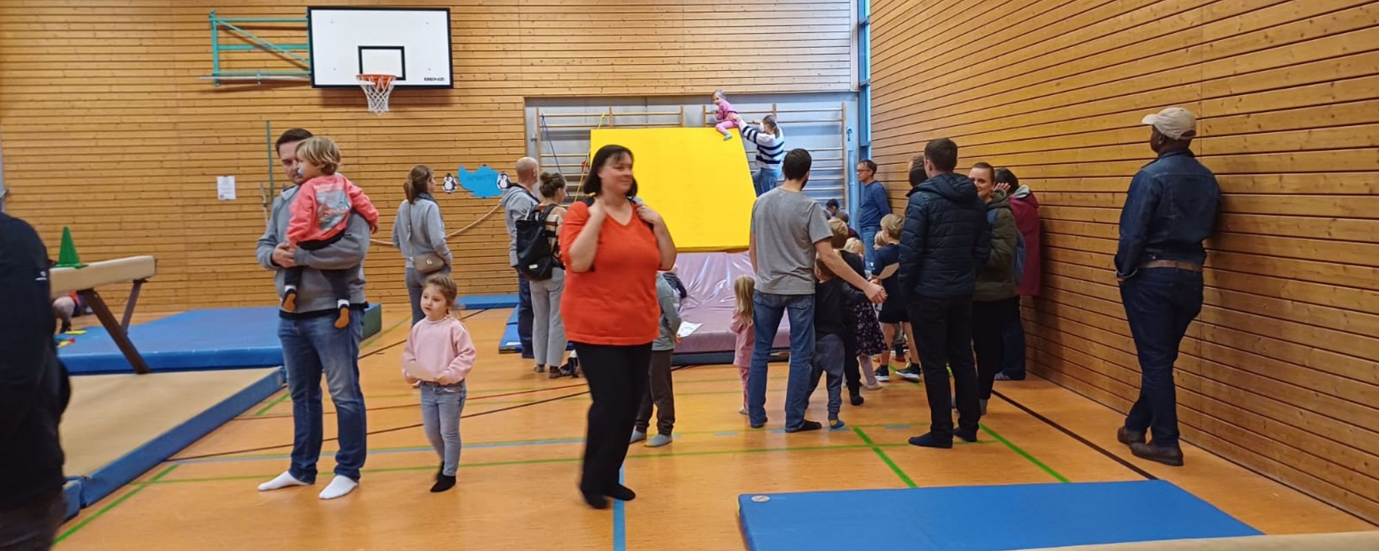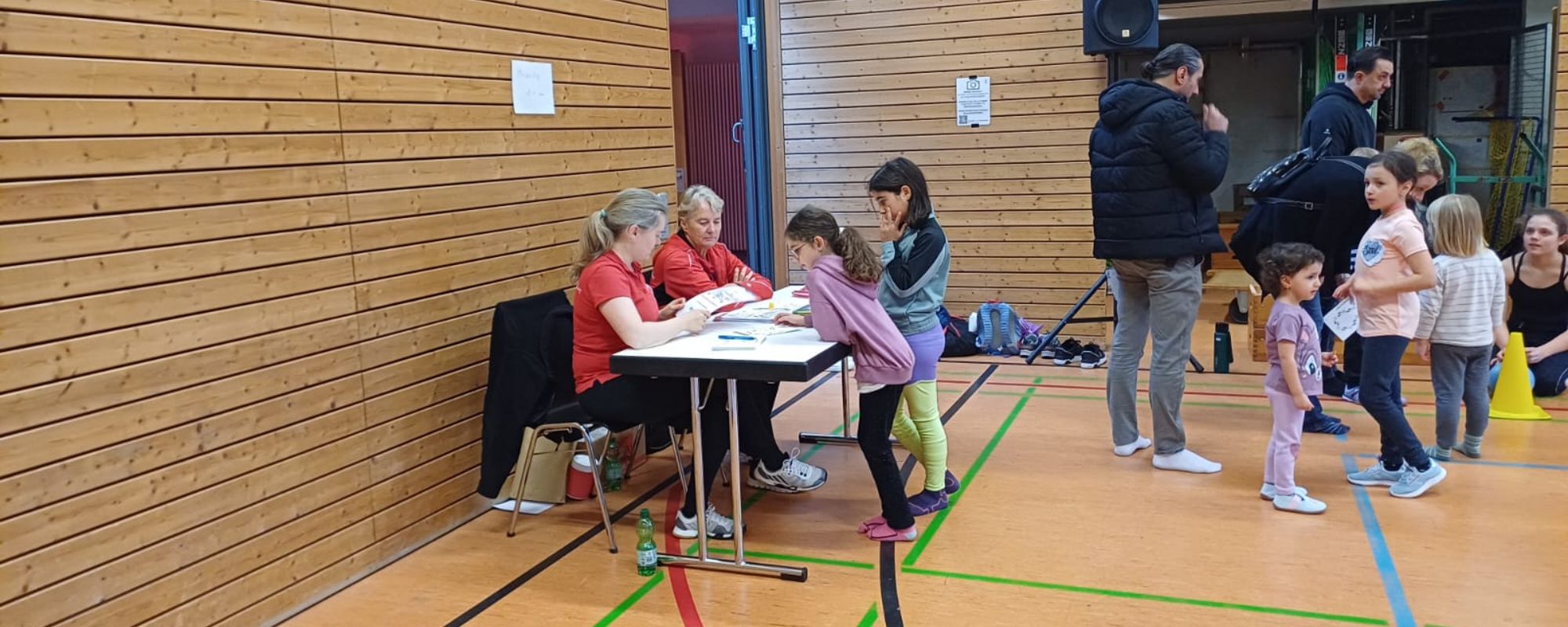 Im Mittelpunkt stand natürlich der aufregende Bewegungsparcours, der unsere Halle in ein einzigartiges Abenteuerland verwandelte: Überall wurde balanciert, geklettert und gesprungen, wobei die Kinder ihre Geschicklichkeit mit großem Eifer unter Beweis stellten. Ein besonderes Highlight war die Anwesenheit unseres Maskottchens Stammi, das die kleinen Sportler anfeuerte und für unzählige fröhliche Momente sorgte. Wer sich durch den Parcours "durchkämpfte", konnte sich am Ende stolz die verdiente Urkunde am Anmeldetisch abholen!