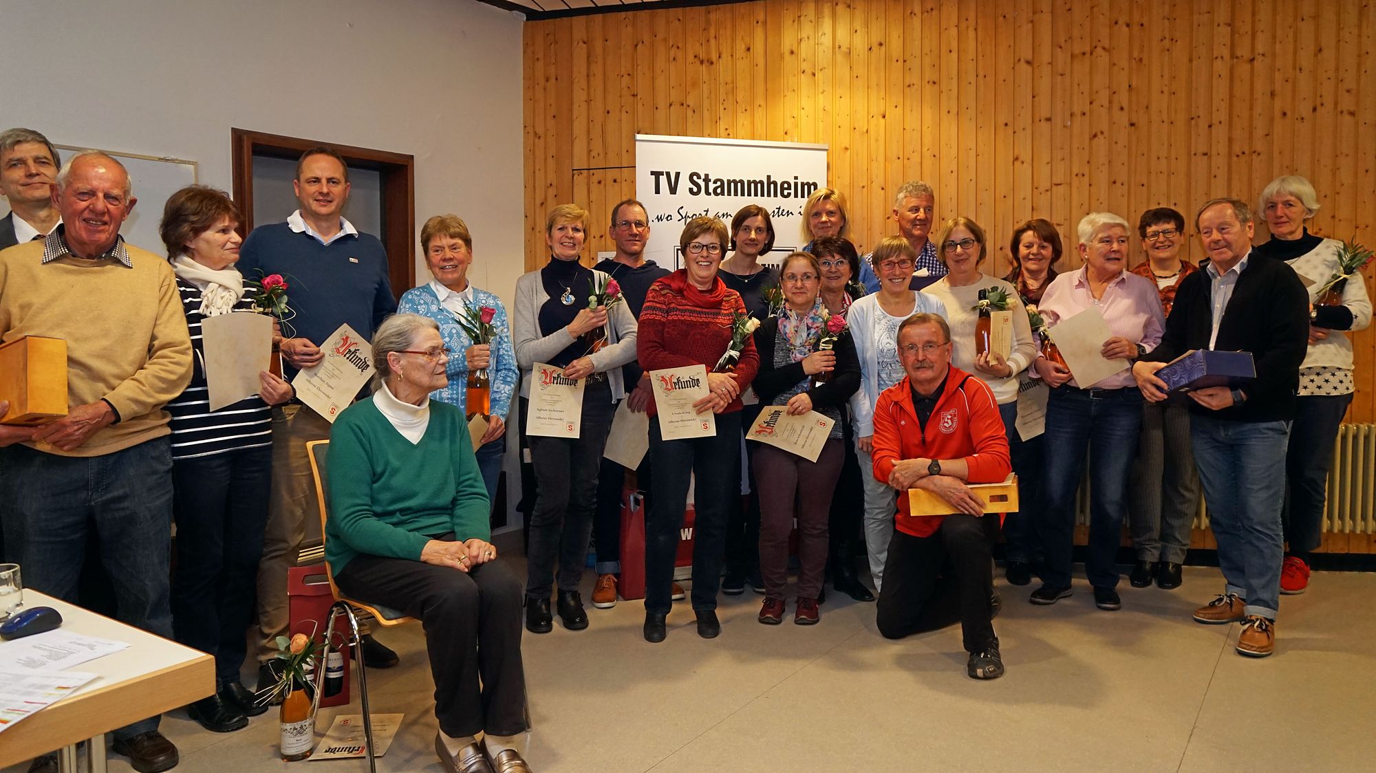 Zahlreiche Mitglieder wurden für Ihre langjährige Mitgliedschaft, Verdienste und Treue zum TV Stammheim geehrt. Mit Herwig Oberkersch, Günter Hildenbrand und Thomas Gühring wurden zudem unter stehenden Ovationen drei Mitglieder, als Anerkennung und Würdigung ihres jahrelangen und unermüdlichen Einsatzes für den TV Stammheim, zu Ehrenmitgliedern ernannt.