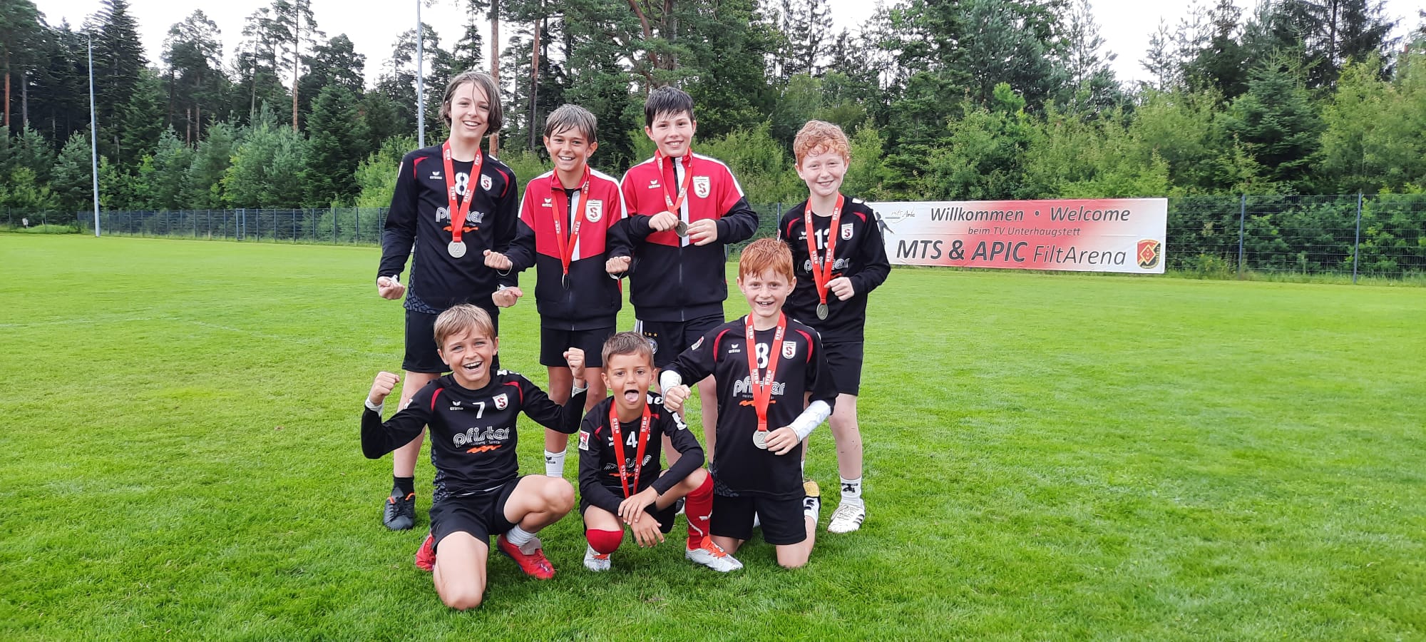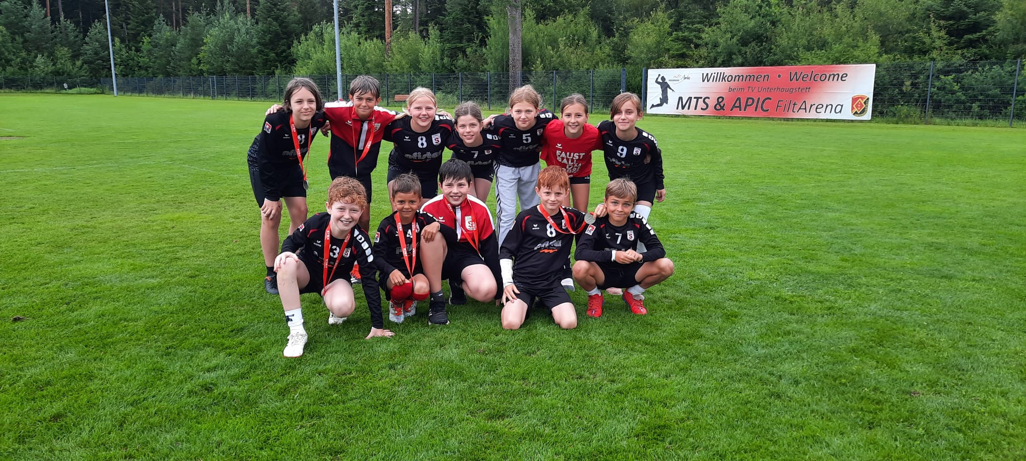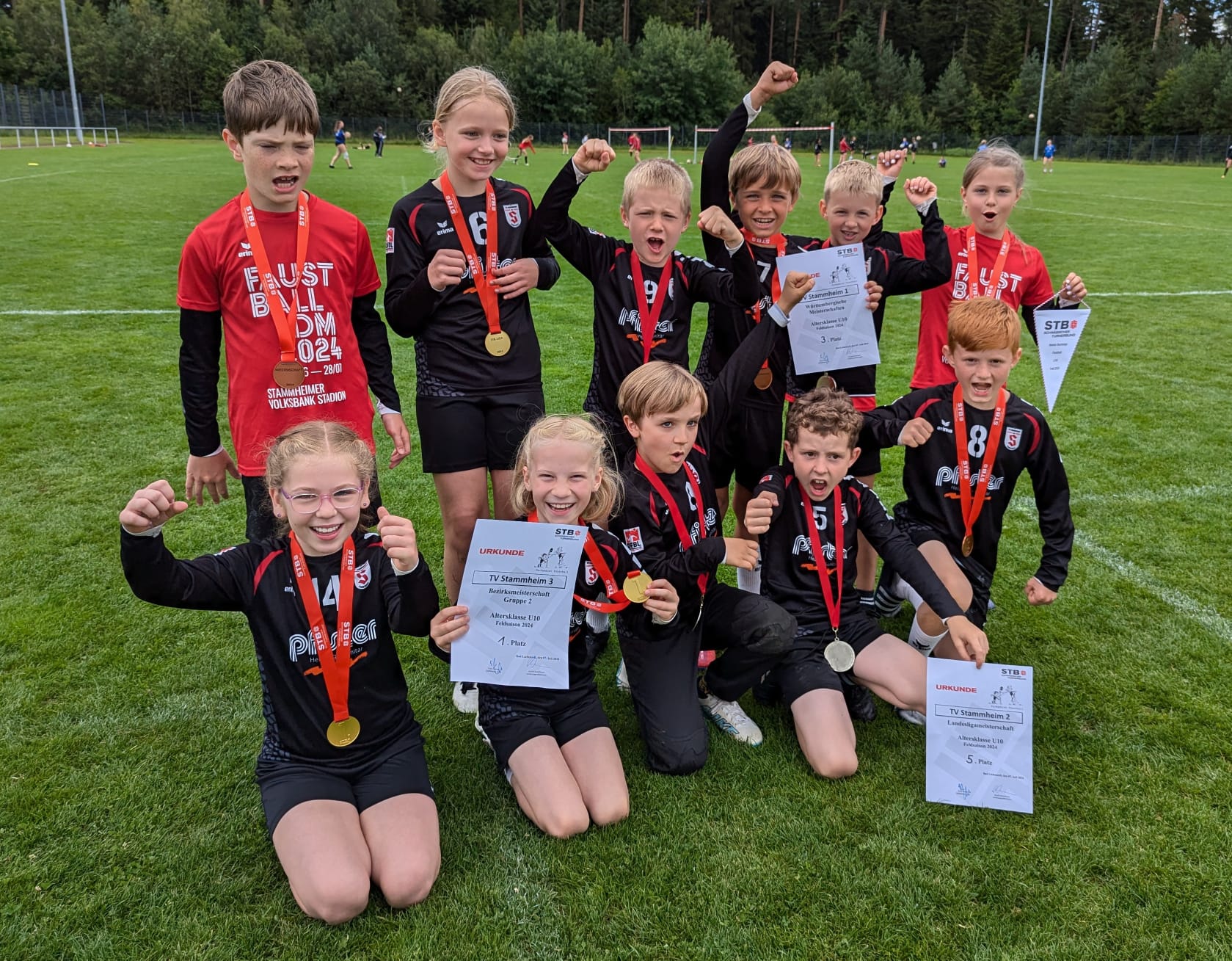 Mit allen drei Teams war der TVS in der Altersklasse U10 auf Medaillenjagd. Für den TVS 1 (Mattis, Leon, David, Nick), der bisher erfolgsverwöhnt und ungeschlagen durch die Saison marschiert war, kamen bei der Württembergischen Meisterschaften die ersten echten Bewährungsproben. Wie schon in der Hallensaison blieb das Kräftverhältnis auch im Feld zementiert. Die beiden Unterhaugstetter Teams waren für unsere Jungs nicht zu knacken, gegen die restliche Konkurrent setzte man sich durch, und mus und darf mit der Bronzemdaille zufrieden sein.