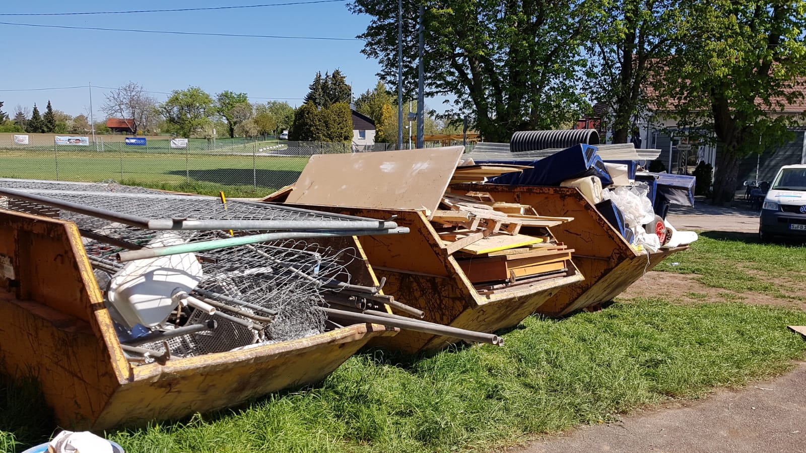 Insgesamt drei große Abfallmulden (Metall, Holz, Misch) wurden in zwei Stunden gefüllt. Der Dank geht an die Faustballabteilung und die Tischtennisabteilung, die tatkräftig mithalfen und die Gelegenheit nutzen, nicht mehr zu verwendende "Altlasten" zu entsorgen.