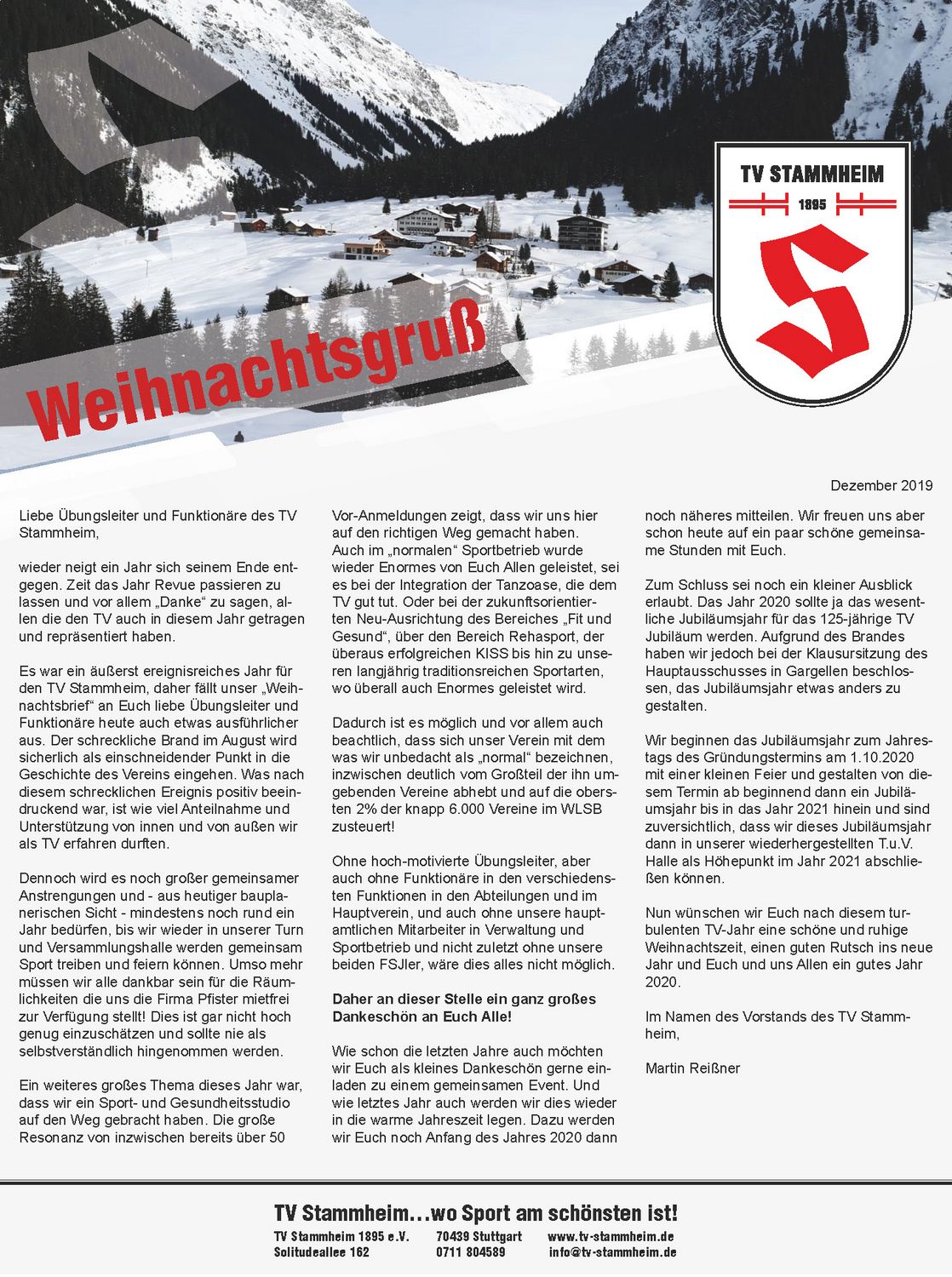 Ein aufregendes Jahr neigt sich mit großen Schritten dem Ende zu. Der TV Stammheim wünscht allen Mitgliedern frohe und besinnliche Weihnachtstage und einen guten Start in das neue Jahr 2020.