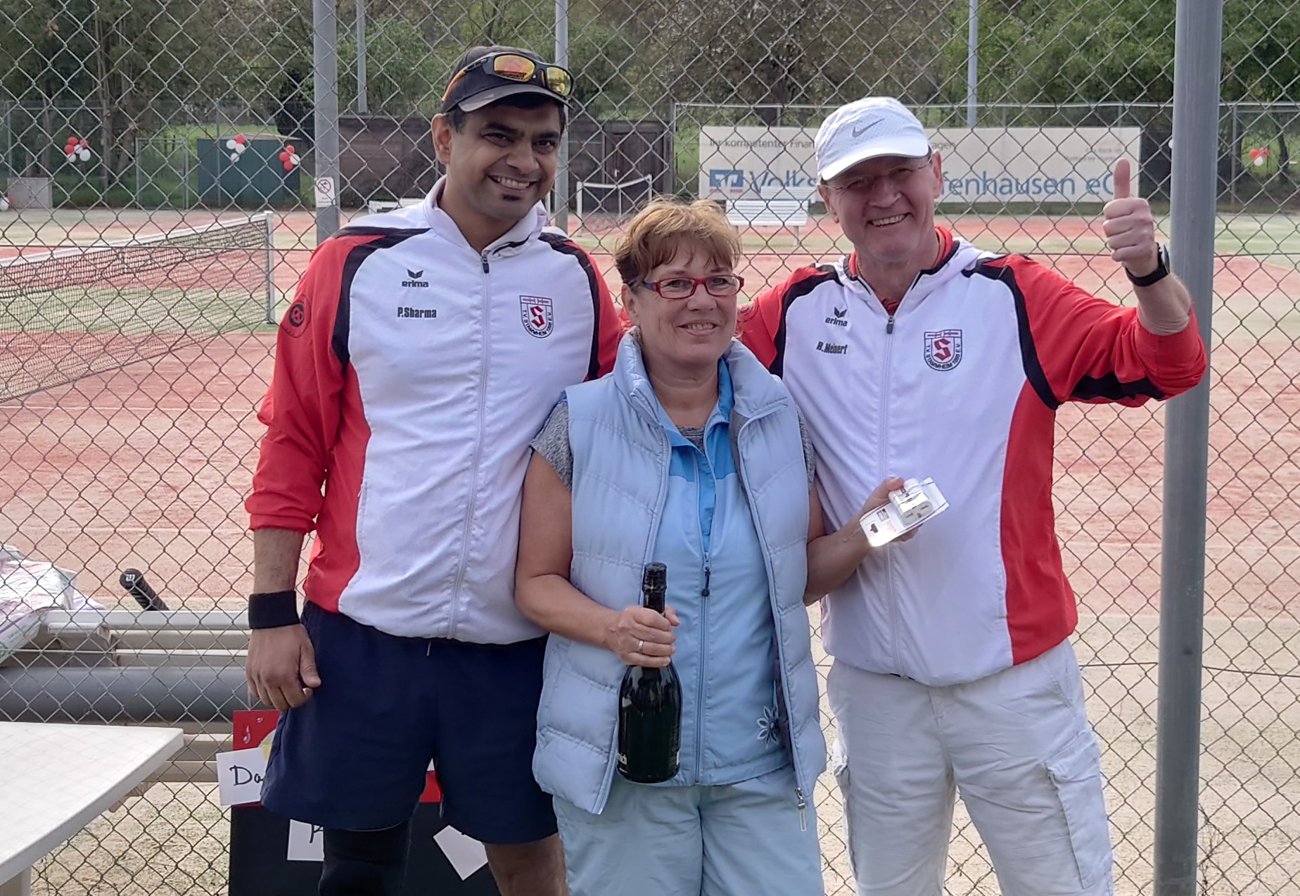 Dies wurde mit einem kleinen Showmatch zwischen Thorsten und Erwin auch gebührend zelebriert, wobei Erwin das Handycap eines Riesenschlägers hatte, was dennoch aber sehr gute Ballwechsel zwischen den beiden hervorbrachte - großen Respekt dafür!