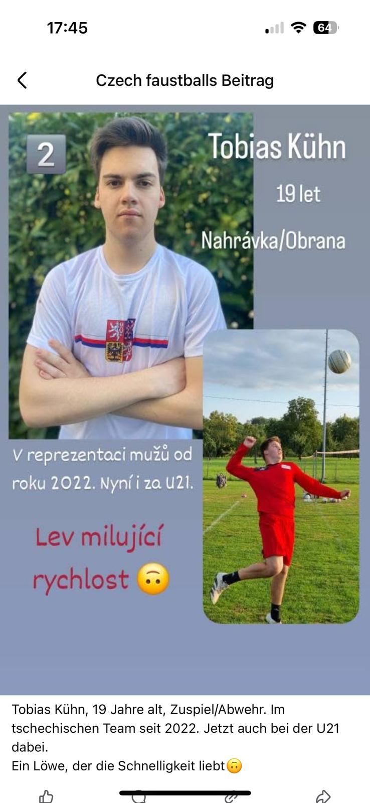 Ins weibliche U18 Team Tschechiens schaffte es außerdem die erst 15-jährige Natalie Hec.