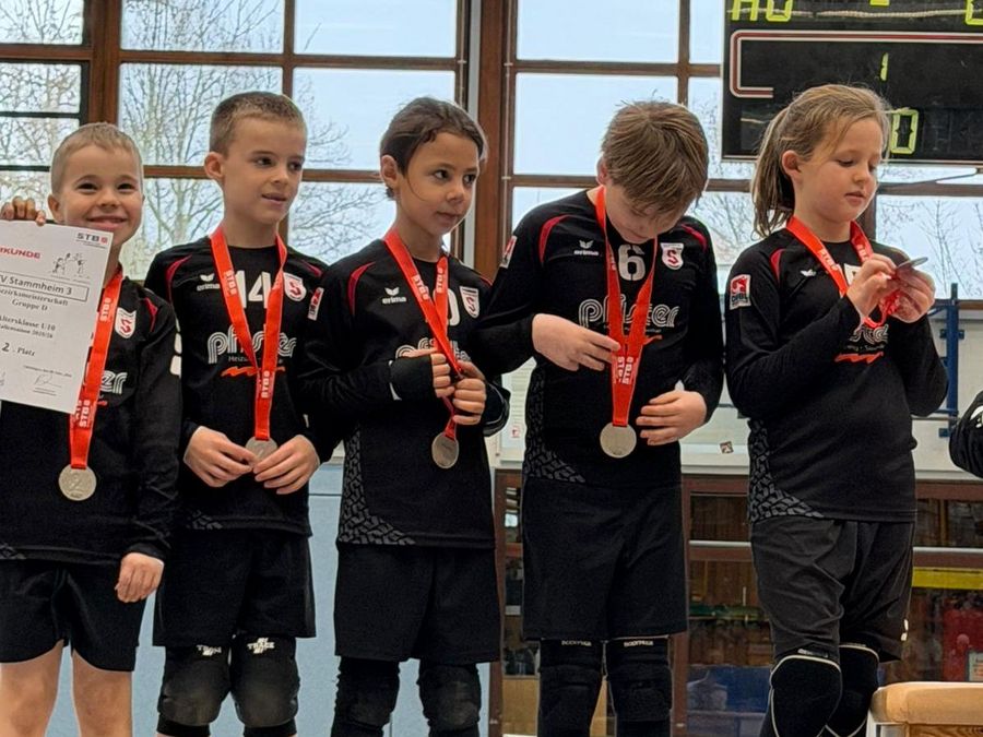 Für einen wahren Medaillenregen hat die U10 am Sonntag gesorgt. Bei der Bezirksmeisterschaft schafften der TVS 3 (Silas, Mika, Kilian, Jonas L, Stefanos) und der TVS 4 (Ida, Mia, Hannah, Amelie, Chiara, Lena) den Sprung aufs Treppchen. Mit der Silbermedaille für die Jungs und der Bronzemedaille für die Mädels wurden unsere jüngsten für ihren Trainingseifer belohnt. In beiden Teams spielen Kinder, die erst seit dieser Hallenrunde zu den U10 Trainingsgruppen gestoßen sind.